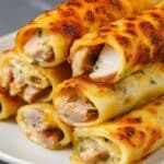 Delicious and crispy Keto Chicken Bacon Ranch Taquitos are a perfect low-carb snack or appetizer. Made with mozzarella cheese slices baked until bubbly and golden, then filled with a flavorful mixture of shredded chicken, cooked bacon, ranch dressing, and green onions, these taquitos are easy to prepare and packed with savory goodness while keeping carbs minimal.