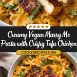 This vegan Marry Me “Chicken” Pasta features crispy pan-fried tofu fillets served over a rich, creamy, and flavorful tomato-based sauce cooked directly with bow-tie pasta. The sauce is infused with smoked paprika, sun-dried tomatoes, garlic, and fresh basil to create a comforting and indulgent plant-based meal perfect for any cozy dinner.
