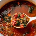 This Mediterranean Lentil Soup is a hearty and flavorful dish featuring green or brown lentils simmered with fire-roasted tomatoes, aromatic vegetables, and a blend of Mediterranean herbs. Finished with fresh kale and a splash of lemon juice, this soup offers a comforting, nutritious meal perfect for any season.