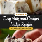 This Milk and Cookies Fudge is a decadent, creamy treat combining the richness of white chocolate, sweetened condensed milk, and the delightful crunch of chocolate chip cookies. Perfect for dessert lovers who enjoy a smooth, melt-in-your-mouth fudge infused with classic chocolate chip cookie flavors and topped with extra chips and cookie crumbs for added texture and indulgence.