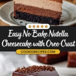 This luscious no-bake Nutella cheesecake combines a rich Oreo crust with a creamy Nutella and cream cheese filling. With a smooth Nutella center and decorative Oreo accents, it’s a perfect indulgent dessert that requires no oven baking and is chilled to perfection for a velvety texture.