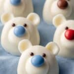 These adorable Polar Bear Cookies are a fun and festive treat perfect for winter or holiday celebrations. Made with double stuffed sandwich cookies dipped in creamy white candy melts, decorated with colorful candy coated chocolates for ears and noses, and finished with black icing eyes, these cookies are both visually charming and delicious. They offer a simple no-bake decorating method that yields a delightful, snowy polar bear look.