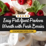 This Pull Apart Pavlova Wreath is a stunning and delicious dessert featuring airy meringue pavlovas baked to perfection, topped with whipped cream, fresh berries, and mint. Perfect for serving a crowd, this elegant centerpiece combines crispy exteriors with marshmallow-soft interiors in a festive wreath style.