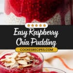 - Assemble and serve: Divide the chilled chia pudding evenly into two small glasses or jars. Pour the cooled raspberry sauce over the pudding. Finish by sprinkling almond flakes on top for a satisfying crunch. Serve immediately or keep refrigerated until ready to eat.