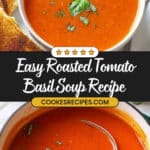 This Roasted Tomato Basil Soup features perfectly roasted Roma and grape tomatoes, caramelized onions, and garlic, blended with fresh basil and vegetable broth into a smooth, comforting soup. With a vibrant flavor profile and optional grilled cheese pairing, it’s an ideal cozy meal that balances roasted sweetness and fresh herbaceous notes.