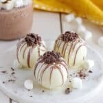 RumChata Hot Cocoa Bombs are a delightful and indulgent treat perfect for chilly days. These chocolate spheres are filled with hot cocoa mix, mini marshmallows, and a splash of Rum Chata, creating a rich and creamy hot chocolate experience when melted in warm milk. Topped with decorative drizzles of white and milk chocolate, they make both a festive gift and a cozy winter treat.