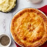 A hearty and classic Scottish Steak Pie featuring tender stewing beef simmered in a rich, flavorful gravy with onions, Worcestershire sauce, and Dijon mustard, all encased in a golden, flaky puff pastry crust. Perfect for a comforting dinner, this traditional pie balances savory meat and a crisp pastry top.