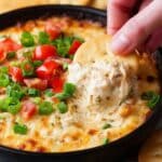 - Rest and garnish: Remove the dip from the oven and let it sit for 5-10 minutes to set. Before serving, sprinkle with sliced green onion and chopped Roma tomato for freshness and color.