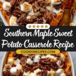 This Southern Maple Sweet Potato Casserole is a comforting and delicious blend of roasted sweet potatoes infused with warm spices, maple syrup, and brown sugar, layered with marshmallows and a crunchy pecan topping. Perfect for holiday dinners or family gatherings, this casserole combines sweet and savory flavors baked to golden perfection.