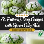 Celebrate St. Patrick’s Day with these easy and festive green cookies made from a simple white cake mix and vibrant Kelly green gel food coloring. These soft, crackled cookies are rolled in both granulated and powdered sugar for a delightful sweet crust, perfect for holiday parties or gifts.
