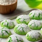 Celebrate St. Patrick’s Day with these easy and festive green cookies made from a simple white cake mix and vibrant Kelly green gel food coloring. These soft, crackled cookies are rolled in both granulated and powdered sugar for a delightful sweet crust, perfect for holiday parties or gifts.