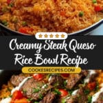 If you’re craving something hearty, cozy, and downright delicious, you’ve got to try this Steak Queso Rice Bowl Recipe. I absolutely love how this dish combines tender, perfectly seasoned steak strips with creamy, dreamy queso sauce on a bed of flavorful rice. It’s one of those meals that makes dinner feel special without taking forever in the kitchen. Trust me, once you make this, it will become a staple in your weekly rotation!