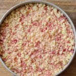 - Add the crunch topping: Coarsely crush the remaining 8 vanilla cream cookies and the 10 strawberry wafer cookies either using a tart shaper or by sealing them in a sandwich bag and crushing with a rolling pin. If desired, add a few drops of red food coloring to the crushed cookies to intensify the strawberry color. Mix well and sprinkle evenly over the top of the assembled cheesecake.