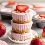 - Fill Cups: Spoon about 2 tablespoons of the strawberry yogurt mixture evenly into each cup. Tap the pan gently to smooth out the layers for even freezing.