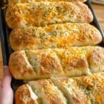 This Subway Bread Recipe replicates the classic Italian Herb and Cheese submarine rolls, featuring a soft, fluffy interior with a flavorful herb crust topped with melted Colby and Monterey Jack cheese. Perfect for sandwiches or enjoying fresh from the oven, this recipe yields 8 footlong rolls that are lightly seasoned with Italian herbs and baked to golden perfection.
