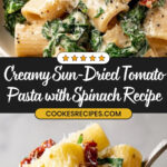 This Sun-Dried Tomato Pasta is a creamy, flavorful dish combining al dente pasta with a rich sauce made from sun-dried tomatoes, garlic, white wine, and fresh spinach. The addition of Parmesan cheese and a touch of lemon juice enhances the tangy, savory profile, making it a perfect quick yet elegant pasta meal.