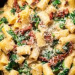 This Sun-Dried Tomato Pasta is a creamy, flavorful dish combining al dente pasta with a rich sauce made from sun-dried tomatoes, garlic, white wine, and fresh spinach. The addition of Parmesan cheese and a touch of lemon juice enhances the tangy, savory profile, making it a perfect quick yet elegant pasta meal.