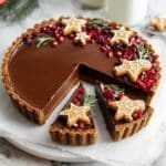 This Vegan Gingerbread Chocolate Tart combines a crisp, spiced gingerbread crust with a rich and creamy chocolate ganache made from dark chocolate and coconut cream. Enhanced with warm spices like ginger, cinnamon, and allspice, this dessert offers a perfect balance of sweetness and spice. Topped with vegan gingerbread cookies and optional pomegranate seeds for a festive touch, it’s an indulgent vegan-friendly treat that’s perfect for holiday celebrations or any special occasion.