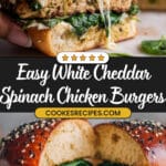 These White Cheddar Spinach Chicken Burgers are juicy, flavorful, and packed with nutritious spinach and savory white cheddar cheese. Perfectly pan-fried to a golden brown, these burgers are an easy and delicious twist on classic chicken burgers, complemented by optional fresh toppings and served on soft burger buns.